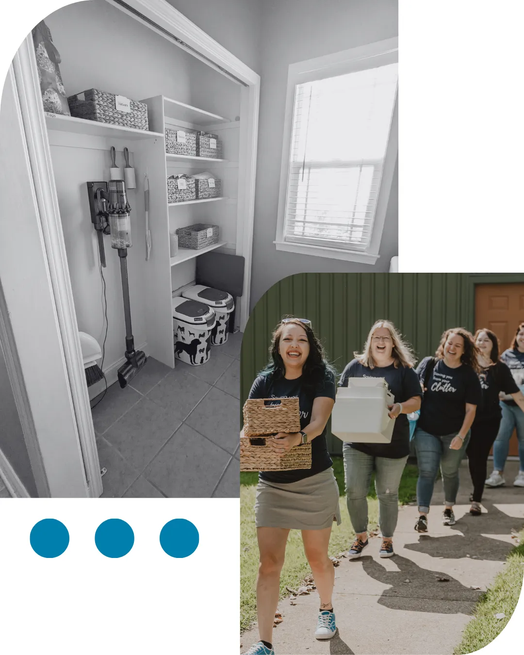 We organize everything from kitchens to garages to basements to bedrooms. During our detailed process, we will get a good idea of your problems, goals, wants, needs, and come up with some creative solutions along the way to give you a space where you can take a deep breath in and feel relaxed.